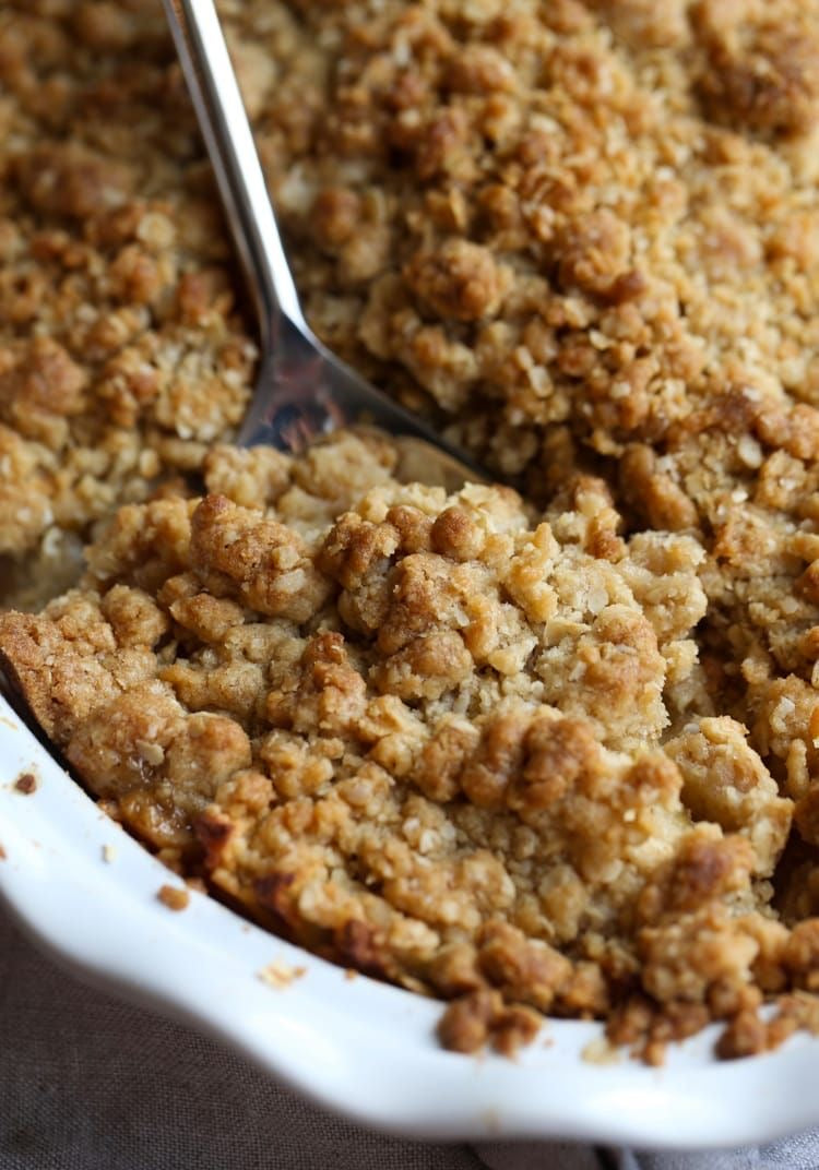 This classic treat features tender, spiced apples beneath a crunchy, golden topping made with wholesome ingredients like old-fashioned oats, all-purpose flour, lemon juice, and some good cinnamon.