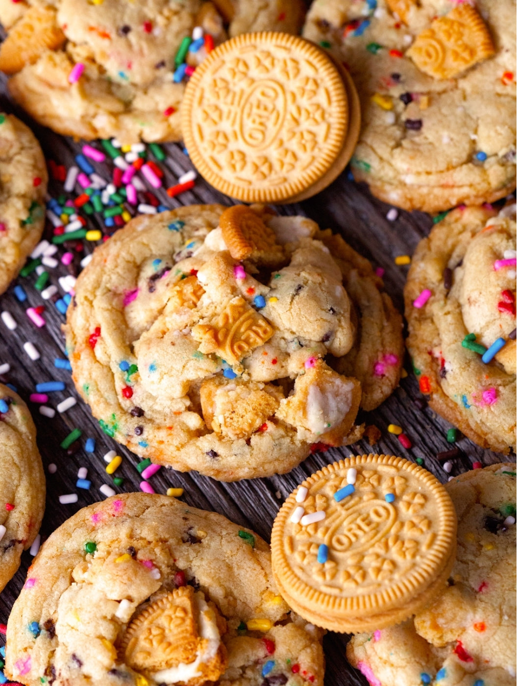 Soft, chewy, crunchy, cakey and baked until golden and drool-inducing. If you adore cookies and cake batter, this cookie version is a must. Pour yourself a tall glass of milk and devour!
